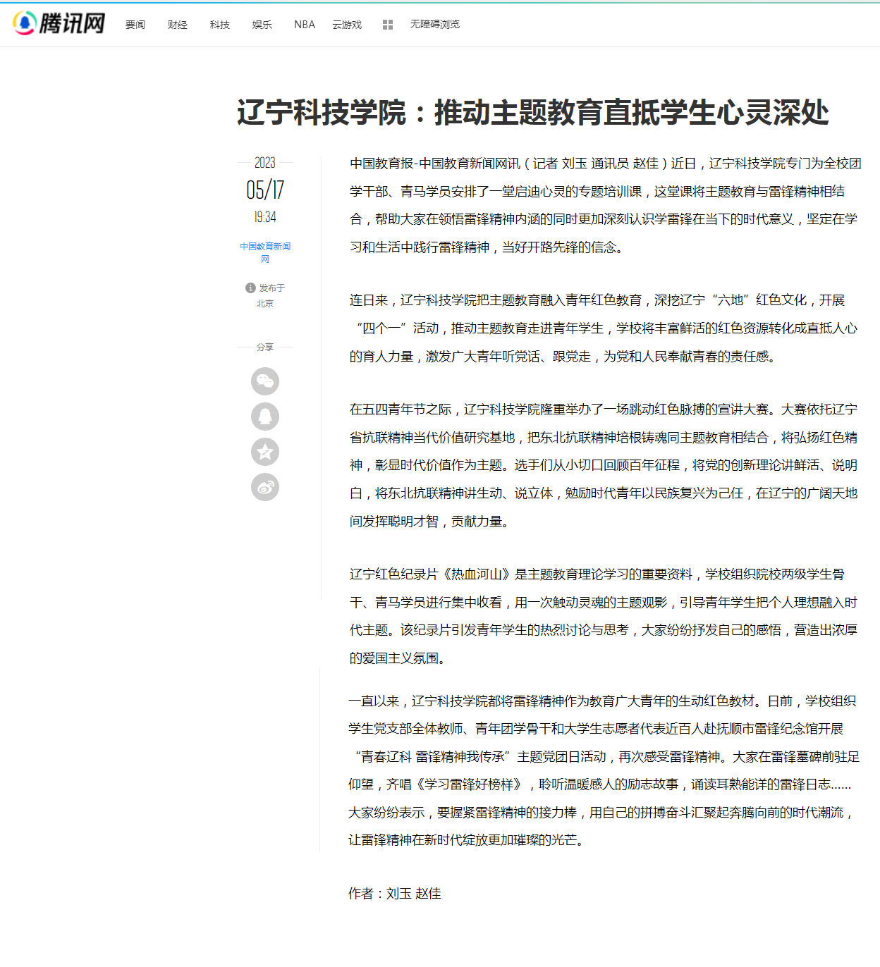 【腾讯网】辽宁科技学院:推动主题教育直抵学生心灵深处